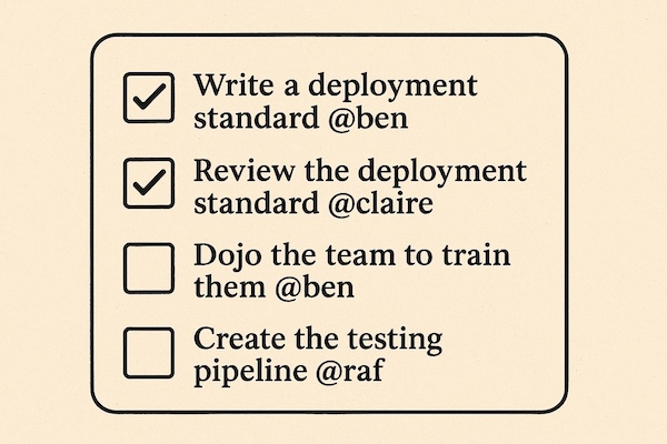 - Organize a dojo (a kind of mini-training session in the field) to share this new practice.