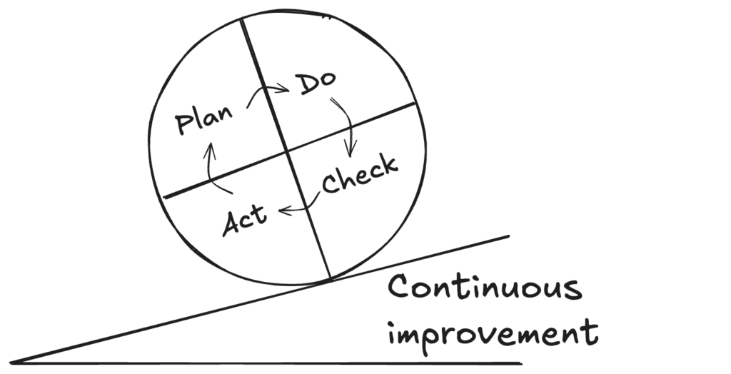 The rigorous problem-solving approach stems directly from the scientific method (during the Age of Enlightenment). It was popularized in the industrial world after World War II by the famous American engineer Edward Deming under the term PDCA (Plan Do Check Act). He is known as one of the gurus of continuous improvement with his famous wheel: